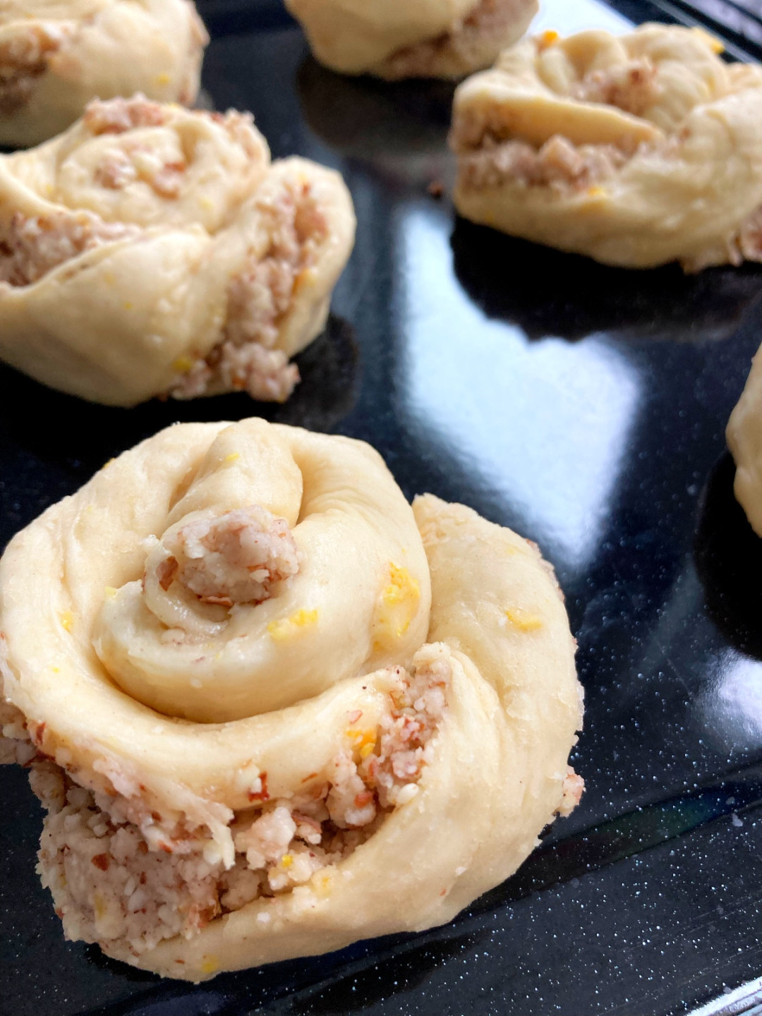 Ezek a finom, narancsillatú, édes zsemlék fűszeres mandulapasztával vannak töltve, és egyszerű citrusos mázzal vannak bevonva. A tészta csavarásának és kavarásának folyamata ugyanolyan szórakoztatóvá teszi az elkészítést, mint amennyire élvezetessé teszik az elfogyasztásukat!