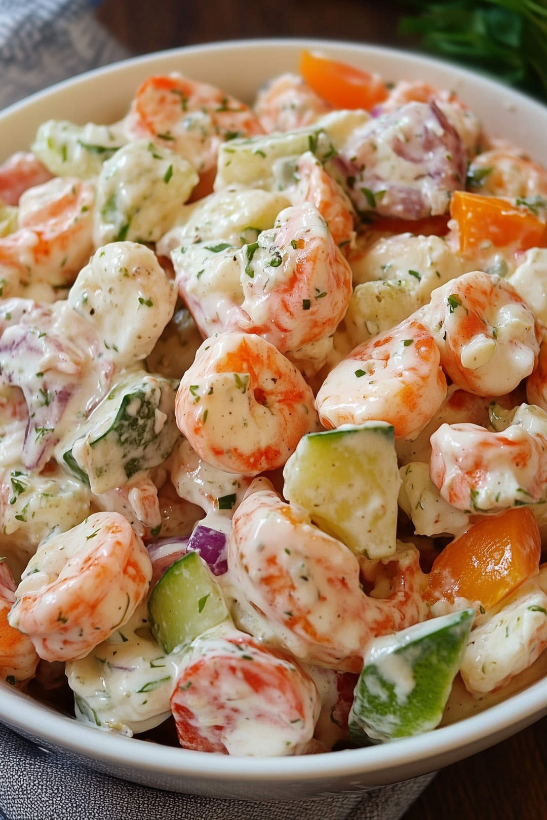 Ez a könnyű és krémes tenger gyümölcsei saláta tökéletes előre elkészíthető étel, ideális egy frissítő ebédhez, szendvics tölteléknek vagy elegáns előételnek. A hűtési idő lehetővé teszi, hogy az ízek szépen összekeveredjenek a legjobb ízélmény érdekében.